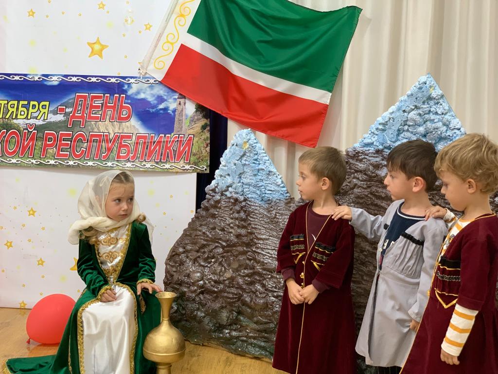 06.09.2022г. в МБДОУ "Детский сад №2 "Маленькая страна" с.п. Гвардейское" Надтеречного муниципального района прошли мероприятия, посвященные ко Дню Республики.