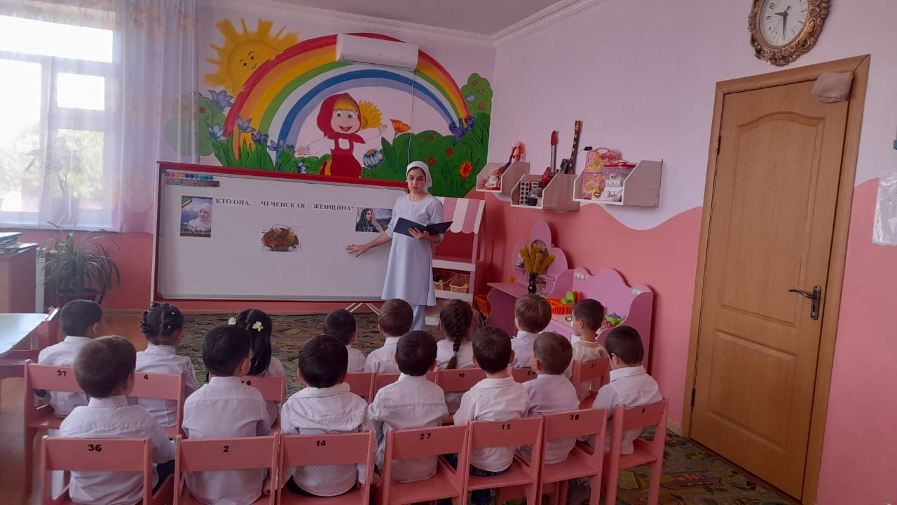 15 сентября 2023г. в нашем детском саду прошли мероприятия, посвященные празднованию Дня чеченской женщины. Цель проведения данных мероприятий - показать роль женщины в чеченском обществе, воспитать чувство патриотизма за свою родину, народ и историю.