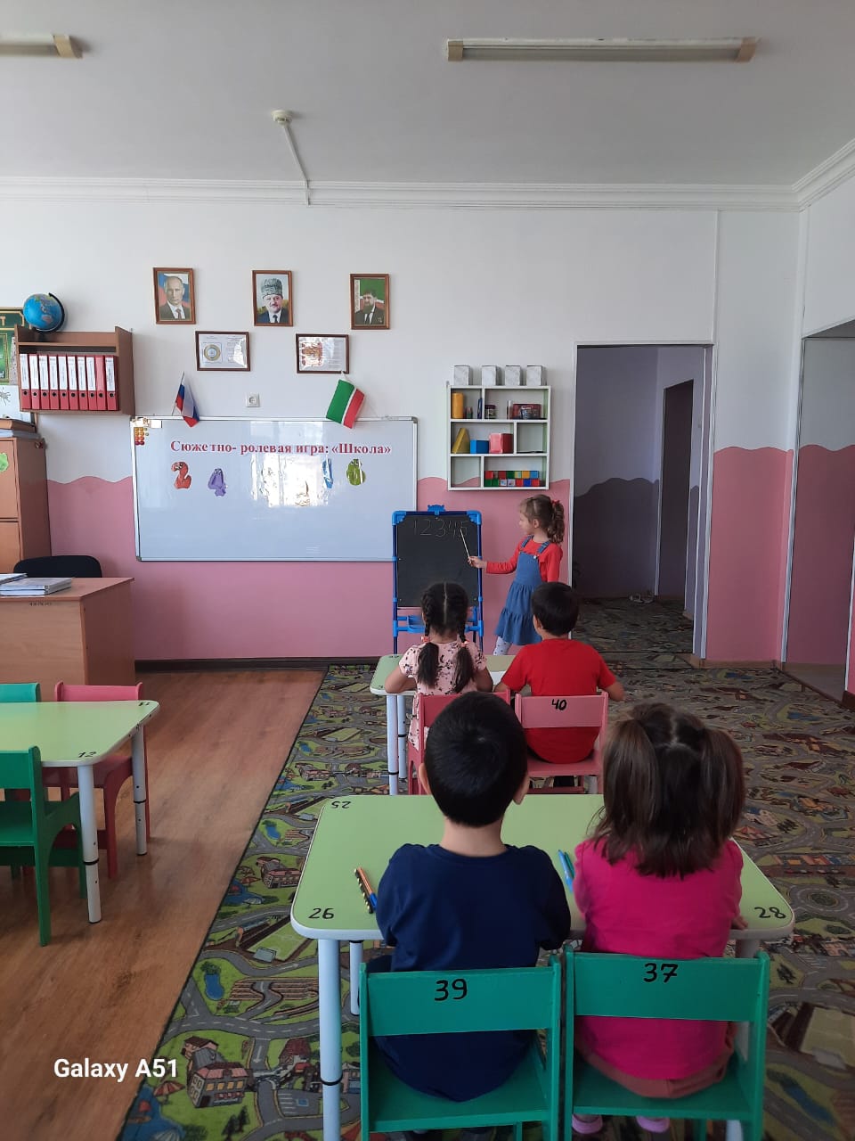 День учителя, 05.10.2023г., в старшей группе "Радуга" отметили проведением беседы и сюжетно-роелвой игры "Школа".